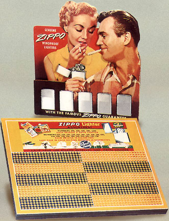 jeu de hasard. 1935, Avec la livraison d’une première commande de 200 pièces à l’effigie d’une compagnie d’assurances et de 500 pièces décorées du logo de " Kendall Oil ", Zippo devient support publicitaire. Jusqu’en 1940 ces personnalisations seront réalisées sur de fines lames métalliques collées à la coque.